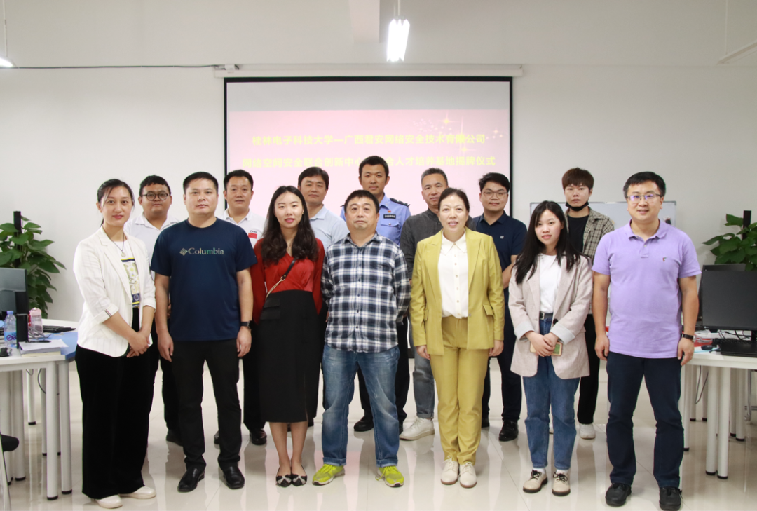 參加此次揭牌儀式的嘉賓還有桂林電子科技大學(xué)計算機與信息安全學(xué)院黨委書記文輝、院長劉建明、副書記肖亮、桂林電子科技大學(xué)計算機與信息安全學(xué)院網(wǎng)絡(luò)空間安全專業(yè)負責(zé)人陶曉玲、教研室主任黃建華、本科生輔導(dǎo)員(就業(yè)聯(lián)絡(luò)人)李健、桂林市公安局科技信息化支隊魏華書、桂林市公安局網(wǎng)絡(luò)安全保衛(wèi)支隊朱天樂、桂林市大數(shù)據(jù)發(fā)展局蔣潔麗、奇安信科技集團股份有限公司林奇安。