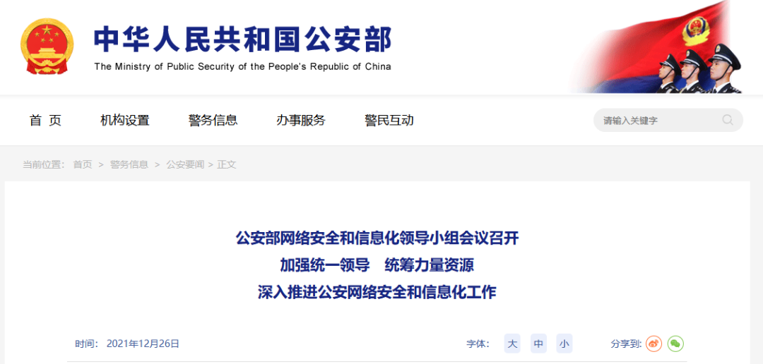 公安部將深入推進(jìn)公安網(wǎng)絡(luò)安全和信息化工作 2022-02-14
